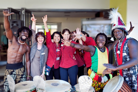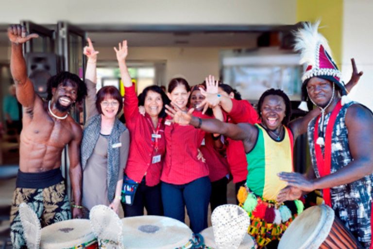 African drumming with djembes and African instruments available for team building workshops.